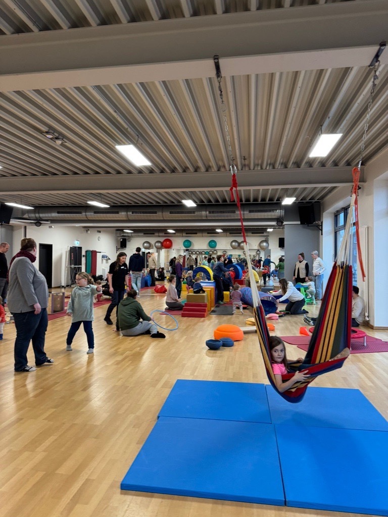 In den Hallen Gym 1 und Gym 2 warteten abwechslungsreiche Geräteparcours auf die 1- bis 3-Jährigen, während in der KDR-Halle die älteren Kinder zwischen 3 und 6 Jahren aktiv wurden. Neben den offenen Bewegungsangeboten fanden außerdem zwei Schnupperstunden „Tanzflitzer“ statt, die großen Zuspruch erhielten. Gemeinsam mit ihren Eltern probierten die Kinder spielerisch erste Tanzbewegungen, lernten einfache Abläufe und hatten dabei sichtlich Spaß.