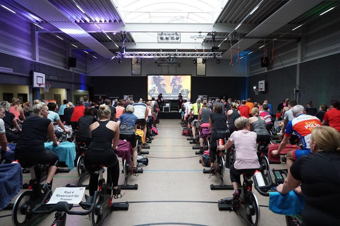 Fünf Stunden lang auf dem Fahrrad sitzen und zu verschieden Mottos schwitzen? Genau das macht den alljährlichen Indoor Cycling Marathon des TV Jahn-Rh…