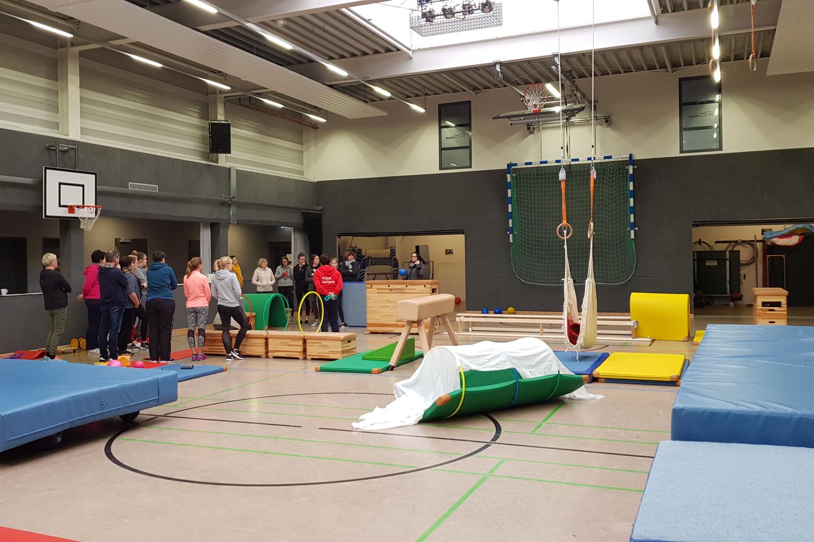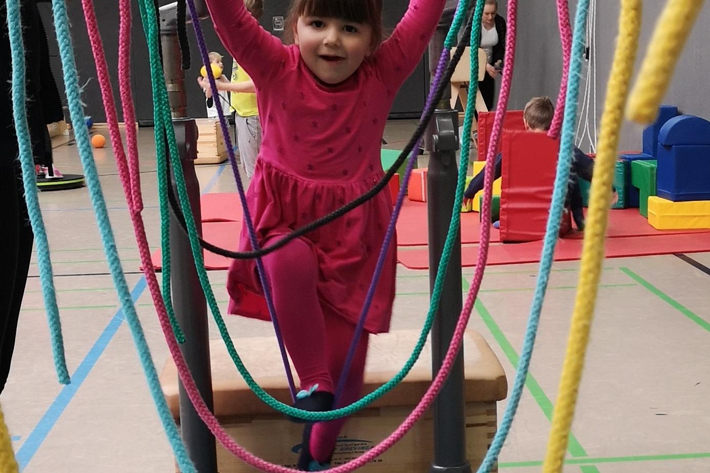 Leo (2 Jahre) und seine Windelflitzer-Freunde tobten sich auf der Abenteuerlandschaft und mit dem Spielmaterial kräftig aus. Auch Sara (3 Jahre) hatte sichtlich Spaß auf den Aufbauten der großen Turnhalle. „Unter den Besuchern waren einige bekannte Gesichter aus unseren Kindersportstunden. Ich habe aber auch viele neue Familien getroffen, die unsere Sportangebote ausprobieren wollten“, freut sich Organisatorin Darline Nahber über die hohe Resonanz der Veranstaltung.