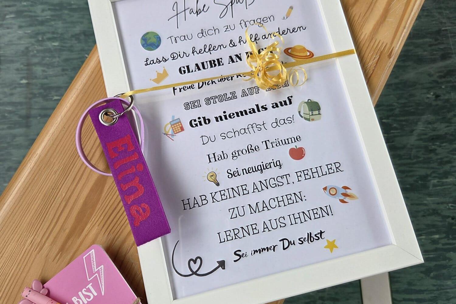 Zum Abschied der 4. Klasse gab es eine kleine Überraschung mit großer Bedeutung. Jedes Kind erhielt einen Notizblock für neue Ideen, einen personalisierten Schlüsselanhänger mit seinem Namen sowie einen Bilderrahmen mit motivierenden Sprüchen. So bleibt die gemeinsame Zeit in schöner Erinnerung und ein Stück OGS begleitet die Kinder auf ihrem weiteren Weg.