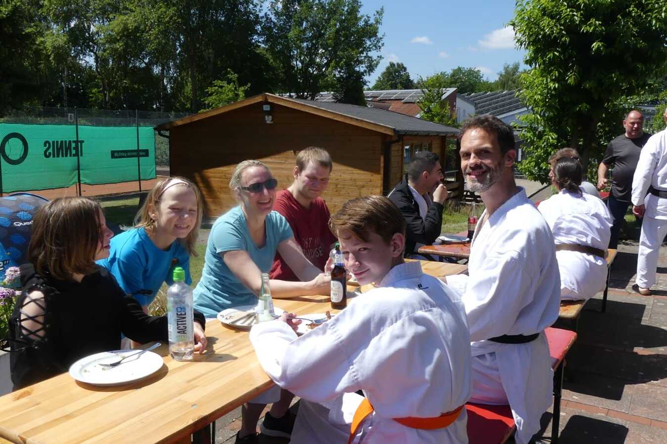 Von 14 Karate-ka (d, m, w), die aus Bochum, Lüdinghausen und Ibbenbüren angereist waren und sich mit Henning Termühlen und Lenja Fransbach vom TV Jahn dieser Prüfung stellten, traten 5 zum 1. Dan, 4 zum 2. Dan, 3 zum 4. Dan und je einer zum 3. und 5. Dan an. Diese 14 Karate-ka spiegelten die Vielfalt und Bandbreite des Karate wieder. Von Anfang 20 bis Ende 60 spannte sich die Altersstruktur der angetretenen Karate-ka. Junge Karate-ka, die noch von sportlichen Wettkämpfen geprägt sind, konnten ihre Stärken ebenso präsentieren wie ältere, die sich mehr der traditionellen Kampfkunst widmen. Besonders bei den Partnerformen und in der Selbstverteidigung zeigten alle ihre Stärken.