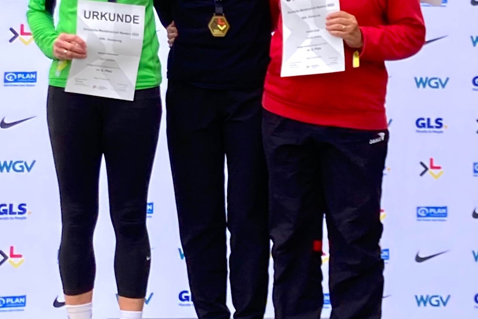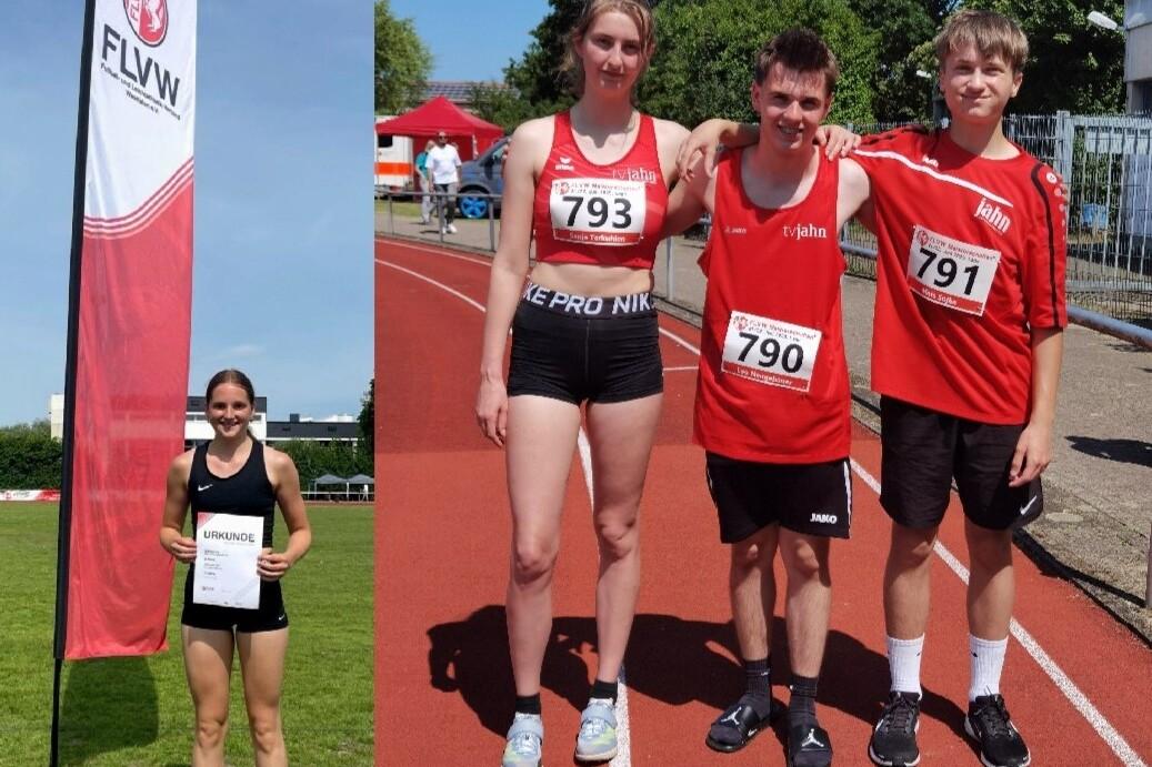 Am Samstagvormittag machte sich Dörthe Lange vom TV Jahn Rheine auf den weiten Weg bis fast an die niederländische Grenze mit einer Fahrtzeit von über 2,5 Stunden. Sie wollte ihre Westfalenmeistertitel aus dem Vorjahr verteidigen. Am Samstagnachmittag stand zunächst der Dreisprung der Altersklasse W50 auf dem Programm. Der Wettkampf gestaltete sich aber nicht ganz leicht, da ein sehr starker und böiger Wind, der zum Glück meistens von hinten blies, herrschte. Lange begann ihren Wettkampf mit zwei soliden Sprüngen über 7 m. Die beiden folgenden Sprünge konnte sie nicht durchziehen, da das Anlauftempo zu hoch war. Im fünften Sprung ließ sie es wieder etwas ruhiger angehen und sprang auf die Saisonbestweite von 7,59 m. Auch im letzten Versuch kam sie noch einmal auf knapp 7,50 m. Mit der erzielten Weite gewann sie den ersten Westfalenmeistertitel. Nach einer Übernachtung in Köln folgte am Sonntagmorgen zunächst der Kugelstoßwettbewerb. Gleich der erste Stoß auf 9,25 m reichte für den Sieg und den zweiten Titel. Die anderen Stöße landeten kurz vor oder hinter der 9 m-Marke, waren aber keine Verbesserung mehr. Im direkt folgenden Diskuswurf steigerte sich Lange im Laufe des Wettkampfes auf 19,76 m und gewann damit ihren dritten Westfalenmeistertitel.