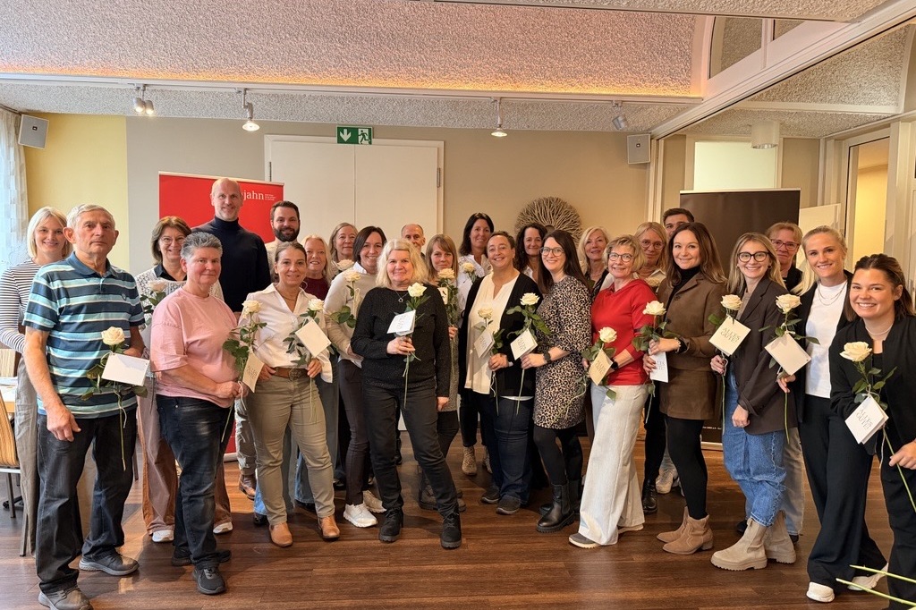 Insgesamt wurden 30 Mitarbeitende ausgezeichnet – vier von ihnen konnten leider nicht anwesend sein. 19 Mitarbeitende wurden für ihre 10- bis 19-jährige Tätigkeit im Verein geehrt, vier weitere für 20 bis 24 Jahre engagierte Arbeit. Besonders hervorgehoben wurden Verena Bittner und Annette Pliet, die beide seit über 25 Jahren Teil des TV Jahn sind.
