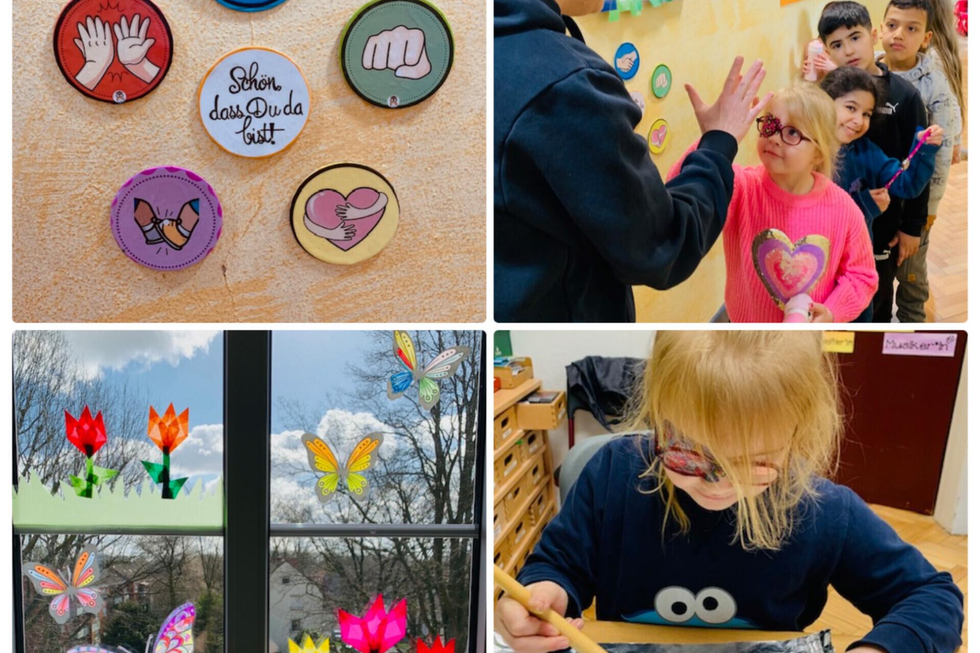 Im Kinderland können sich die Kinder neuerdings vor dem Betreten des Gruppenraums eine Begrüßungsvariante aussuchen. Diese wird dann vor dem Eintreten des Raums im Vorfeld durchgeführt. Zum Beispiel ein Handschlag oder ein "High Five".