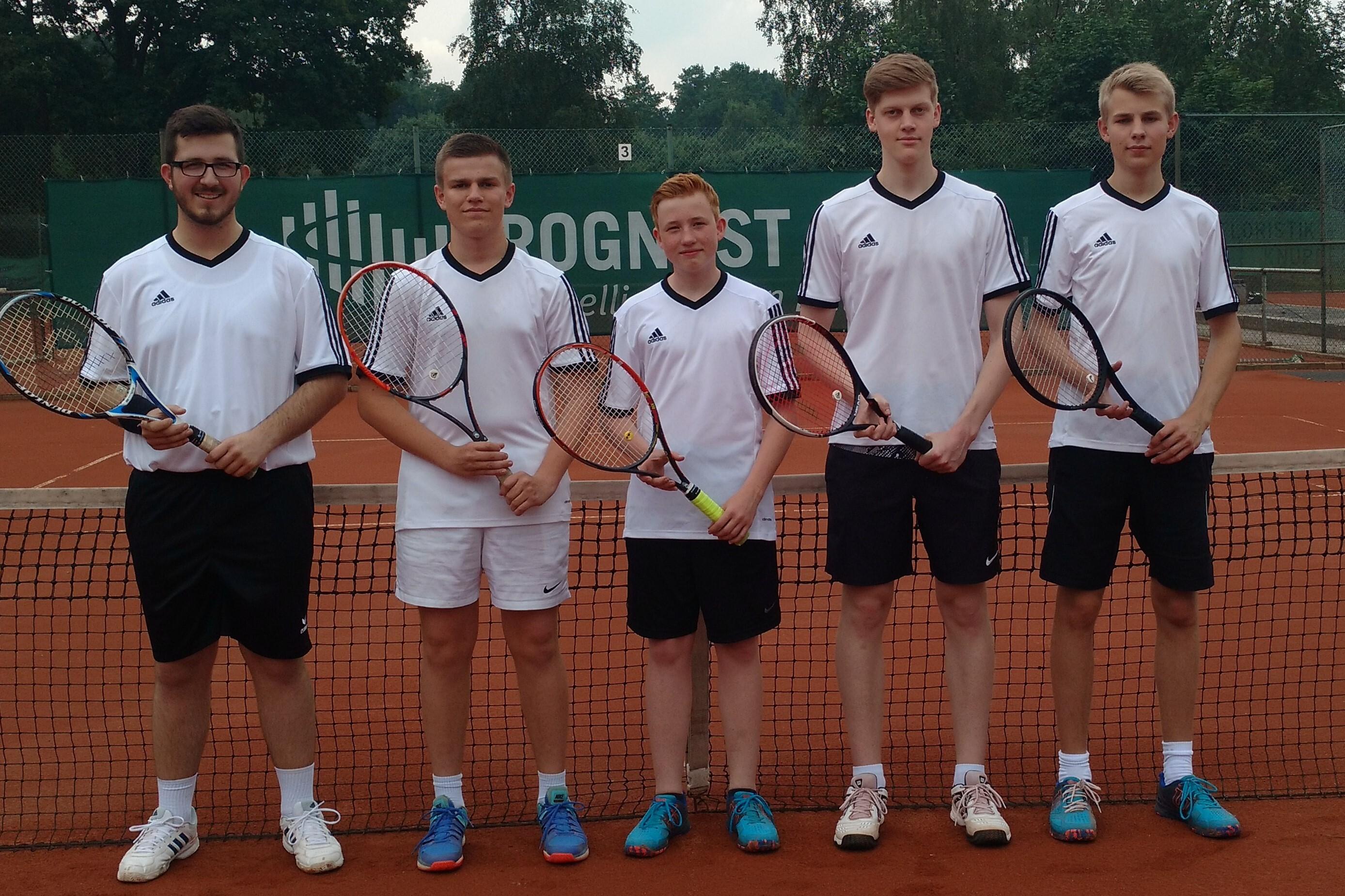 An Position 4 musste sich der debütierende Bojan Bera, trotz guter kämpferischer Leistung, seinem starken Gegner glatt in zwei Sätzen geschlagen geben. Über bereits mehr Erfahrung verfügte Moritz Röpke an Position 3 und zeigte dieses auch in einer souveränen Begegnung, die er mit 6:0 und 6:1 für sich entscheiden konnte. An Position 2 musste Simon Hermann im ersten Satz lange kämpfen, konnte diesen aber schlussendlich mit 6:4 für sich entscheiden. Im zweiten Satz konnte Simon seine Leistung nochmal steigern und gewann diesen recht deutlich mit 6:1. Im Spitzenspiel an Position 1 lief es zunächst für Jost van Schoonhoven nach Plan, da er durch seine druckvolle Spielweise seinen Gegner im Griff hatte und den ersten Satz mit 6:2 gewann. Der zweite Satz verlief deutlich ausgeglichener und musste beim Spielstand von 6:6 im Tiebreak entschieden werden. Dort behielt Jost einen kühlen Kopf und konnte diesen für sich entscheiden.