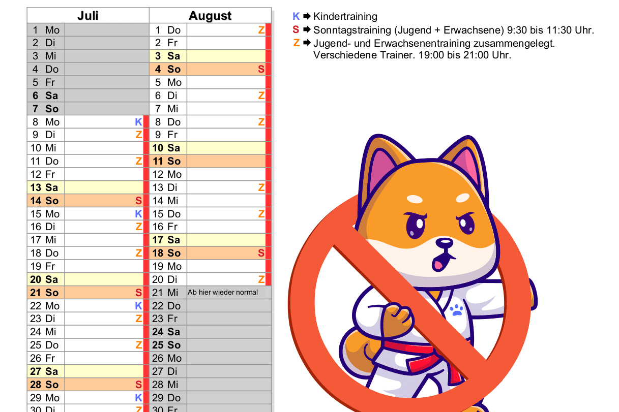 Zum Ferienbeginn (in NRW), gibt es hier, zur besseren Übersicht, unseren Trainingskalender für die Sommerferien.