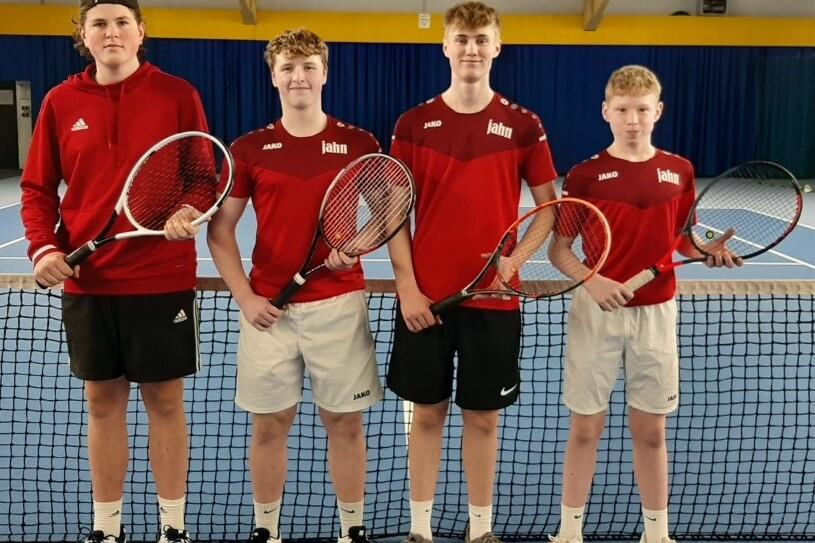 Foto (v.l.n.r.): Die Tabellenführer der U18 II Junioren des TV Jahn Rheine mit Leo Rottkamp, Matthis Braam, Tom Elfert und Justus Lenzing.