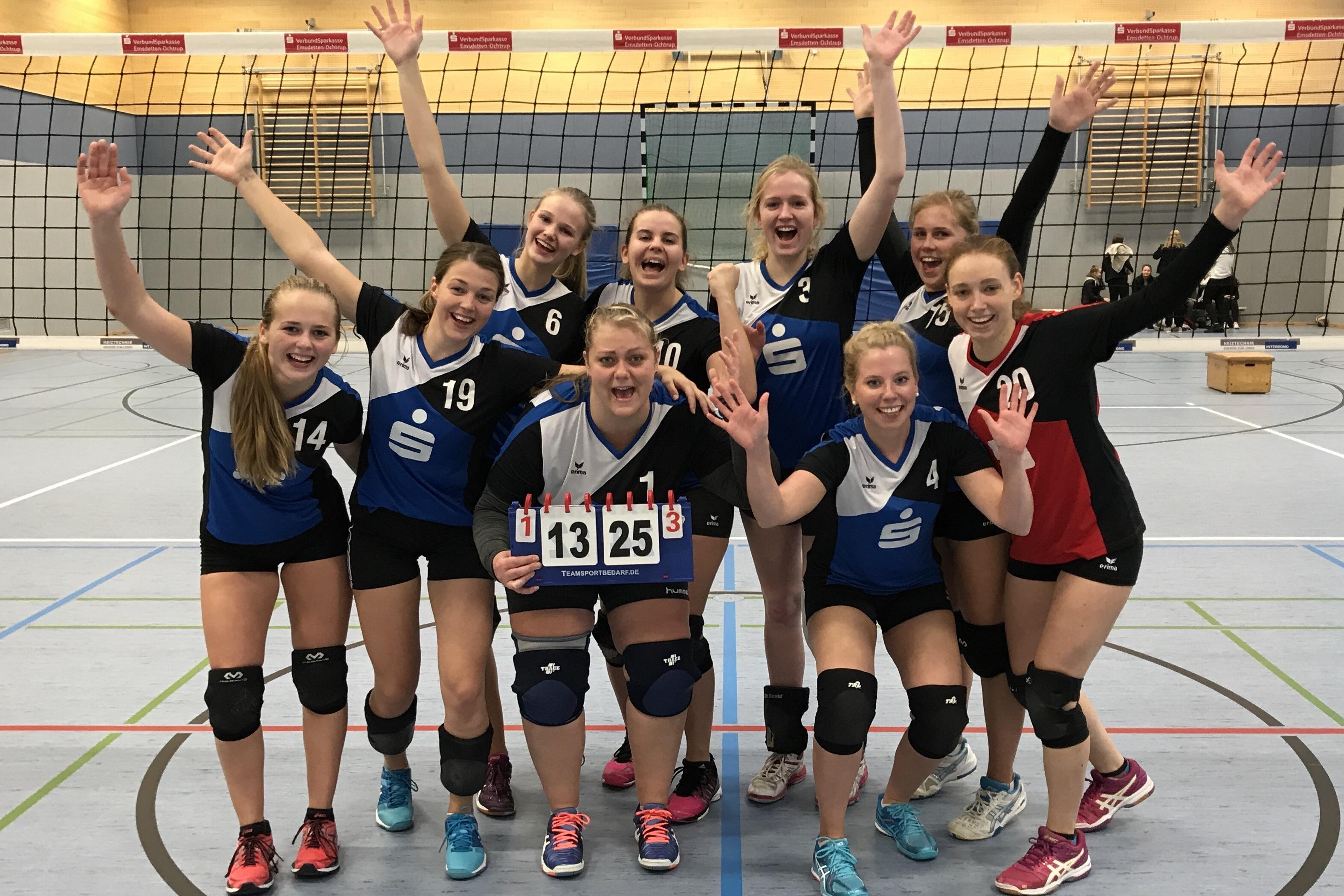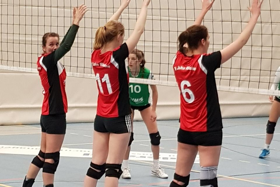 Den Start in den dritten Satz verschliefen die Volleyballerinnen des TV Jahn Rheine 2 jedoch und lagen schnell mit 4:8 im Rückstand. Punkt für Punkt kämpften sie sich aber wieder heran und konnten beim 11:11 dank starker Aufschläge von Lena Kipker wieder ausgleichen. Dank guter Abwehraktionen sowie druckvollen Angriffen konnten sich die Jahn Volleyballerinnen weiter absetzen und Durchgang drei mit 25:19 gewinnen. Satz vier wurde dann zu einer deutlichen Angelegenheit für die Jahn Damen. Marica Niemeyer erspielte mit ihrem Service gleich zu Beginn eine komfortable sechs-Punkte-Führung, die den Jahn Volleyballerinnen die nötige Sicherheit gab. Nach nur 18 Minuten stand der 25:13 Satzerfolg im vierten Durchgang fest und die Jahn Volleyballerinnen konnten den 3:1 Sieg und die damit verbundenen drei Punkte bejubeln.