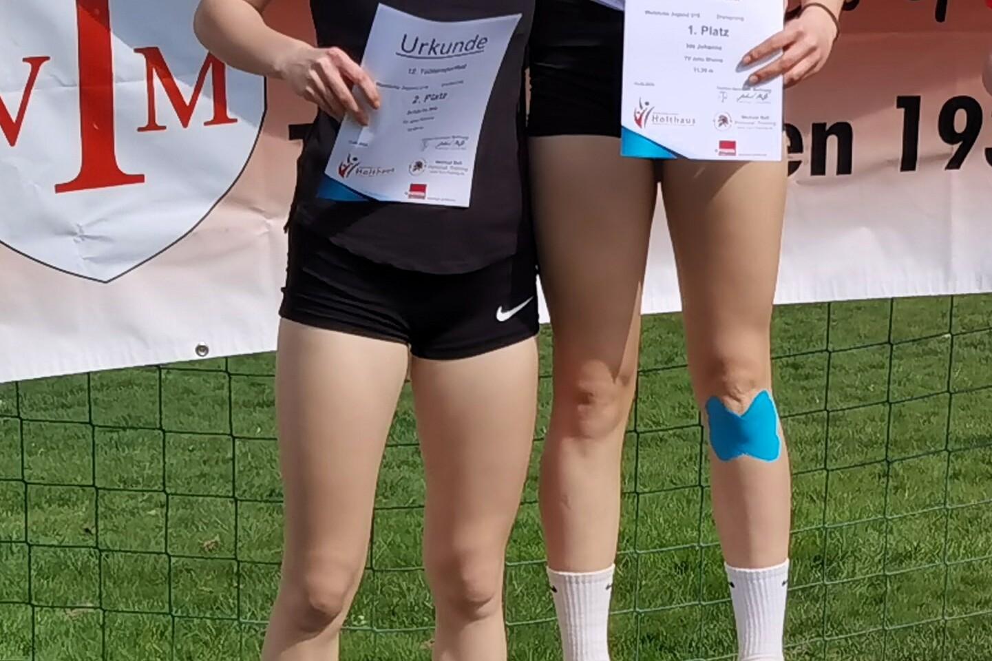 Beim altbekannten Tüötten-Sportfest in Mettingen gingen beide Athletinnen im Dreisprung an den Start und mussten sich fünf weiteren Springerinnen stellen.