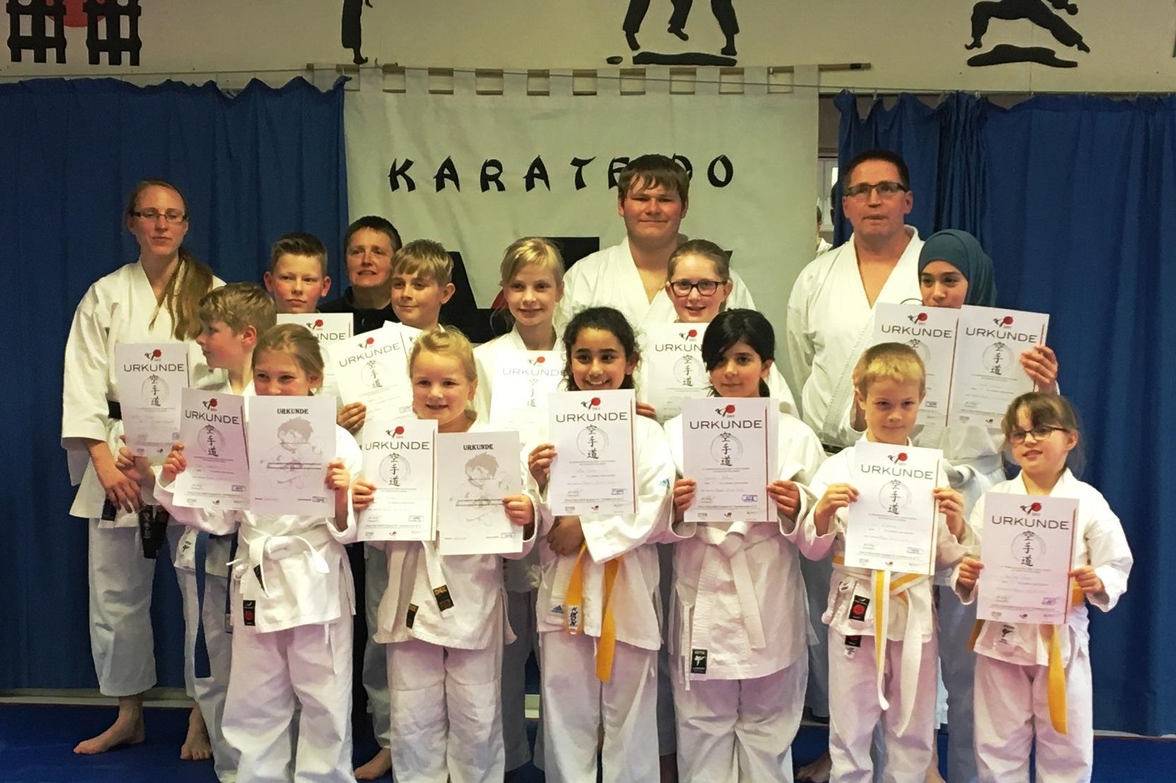 Unter den Augen des Prüfers Jens Evers und der Betreuerin Claudia Mersch nahmen sich sechs Kinder vor, die nächste Stufe in der Karatewelt zu erklimmen. Nach anfänglicher Nervosität meisterten die Kinder die Prüfung ganz souverän. Jens war mit den Prüflingen sehr zufrieden und alle bestanden die Prüfung. Im Anschluss erhielten somit alle die Urkunde zum nächsten Kyu.