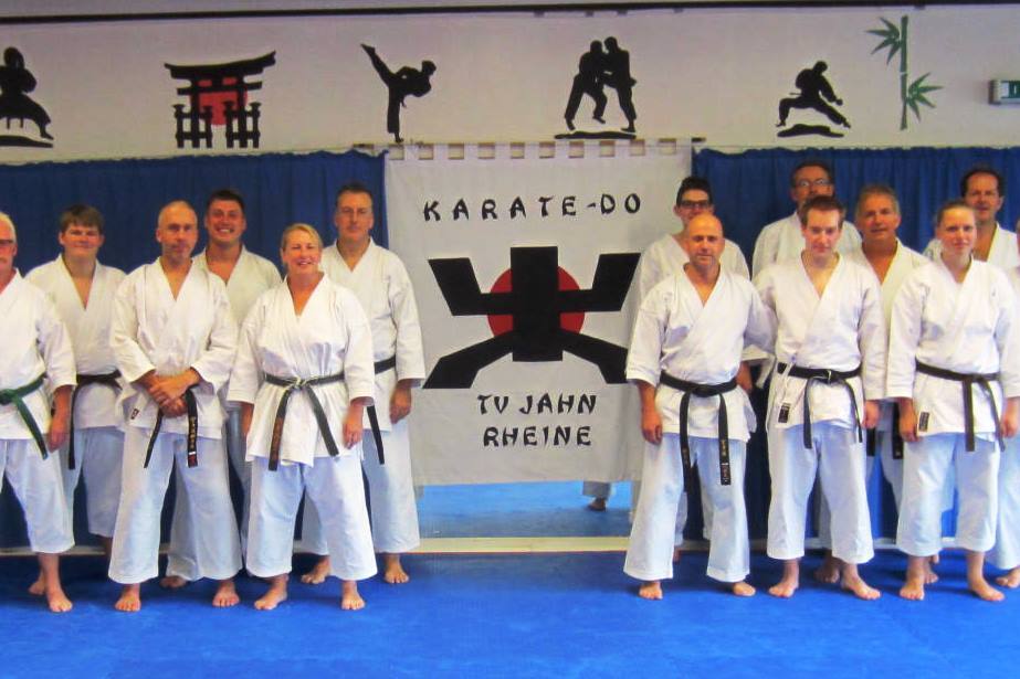 Am vergangenen Freitag traten einige Karate-ka des TV Jahn zur Kyu-Prüfung an. Wie im Judo werden die Fortschritte in der Ausbildung der Kampfkunst durch unterschiedliche Gürtelfarben gekennzeichnet und vom 9. Bis 1. Kyu graduiert. Konrad Scholten hatte sich als Prüfer gut vorbereitet und sogar das Durchschnittsalter der Teilnehmer mit 25,21 ermittelt. Allerdings war auch die Zusammensetzung der Prüflinge sehr interessant, denn die Altersspanne reichte von 9 bis 58!
