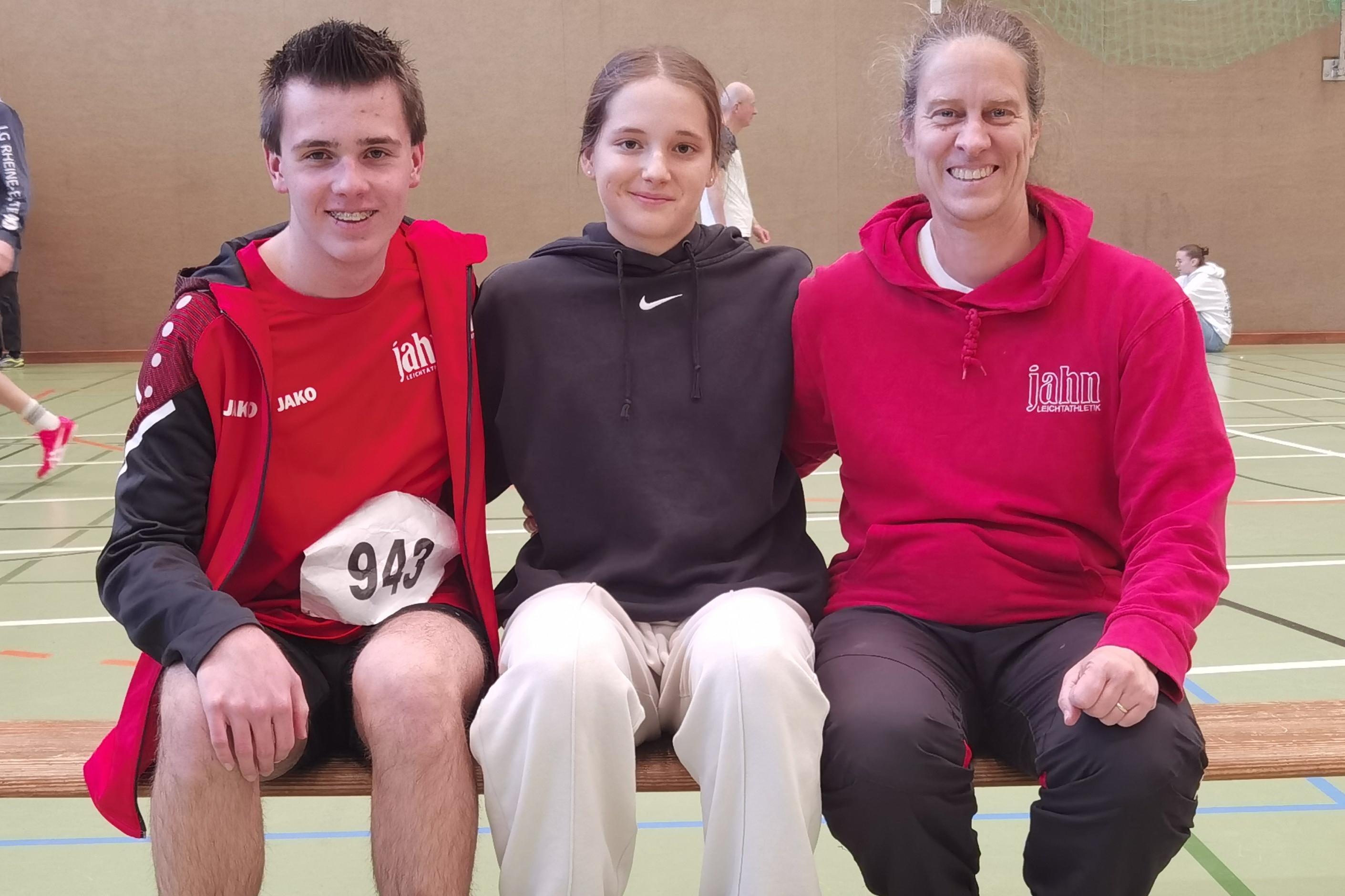 Erste Leistungsüberprüfung zum Einstand in die Hallensaison beim Hallensportfest in Ibbenbüren stimmt größtenteils positiv: v.l. Leo Neugebauer (M15), Johanna Ide (WJU18) und Dörthe Lange (W50)