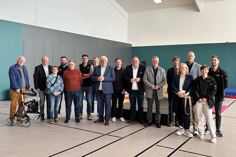 Seit einigen Wochen läuft das Angebot „Rehasport für die Seele“ im TV Jahn, welches sich speziell an Menschen mit psychischen Erkrankungen richtet. Grund genug für den Minister für Arbeit, Gesundheit und Soziales des Landes NRW Karl-Josef Laumann, dem Sportverein einen Besuch abzustatten, um mehr über das neue Angebot zu erfahren. Begrüßt wurde der Minister von TV Jahn-Präsident Stefan Gude, dem Vorstandsvorsitzenden Ralf Kamp und weiteren Mitarbeitenden des Vereins. Stefan Gude verdeutlichte in seiner kurzen Rede die Haltung des Vereins, Sportangebote für alle Menschen zu machen. Dazu gehörten auch Menschen mit unterschiedlichen Erkrankungen oder Behinderungen. Die Bedeutung des Sports insbesondere für Menschen mit psychischen Erkrankungen hob der Minister in seiner Begrüßung hervor und lobte den Verein und seine Partner für das innovative Pilotprojekt. Bürgermeister Dr. Peter Lüttmann freute sich ebenfalls über die Initiative und bezeichnete Rheine als Sportstadt, in der der TV Jahn als Großsportvereine eine besondere Rolle einnehme. Nach der Begrüßung führte Ralf Kamp die Teilnehmenden in die Kindersporthalle Paris, wo das neuartige Angebote im Detail vorgestellt wurde. Projektleiterin und Übungsleiterin Sandra Stratmann erklärte den Aufbau des Angebots und präsentierte typische Übungsformen, die mit der Zielgruppe durchgeführt werden. Barbara Deiters und Frank Winter vom Sozialpsychiatrichen Dienst des Kreises berichteten davon, wie sie vor etwa eineinhalb Jahren den Stein ins Rollen brachten: „Wir alle wissen, wie wichtig Sport und Bewegung für eine gesunde Psyche sind, doch es fehlen die passenden Angebote für Erkrankte“, verdeutlichte Deiters den Bedarf für das Angebot. Sie sei durch die Arbeit im Bereich der Inklusion im Sport auf den TV Jahn aufmerksam geworden und nahm Kontakt zum Verein auf. So kam eins zum anderen und nach reichlich Vorbereitungszeit, in der es die eine oder andere Hürde zu nehmen galt, konnte das Angebot im Sommer starten. Alle Teilnehmenden waren sich in der Schlussrunde einig: Das Angebot sei eine Erfolgsgeschichte, die es unbedingt im ganzen Land nachzuahmen gelte.