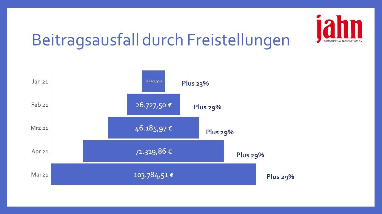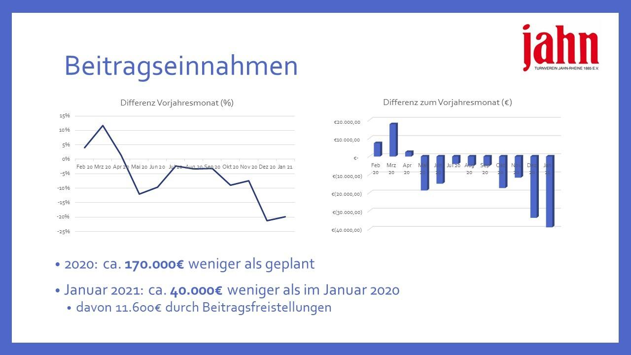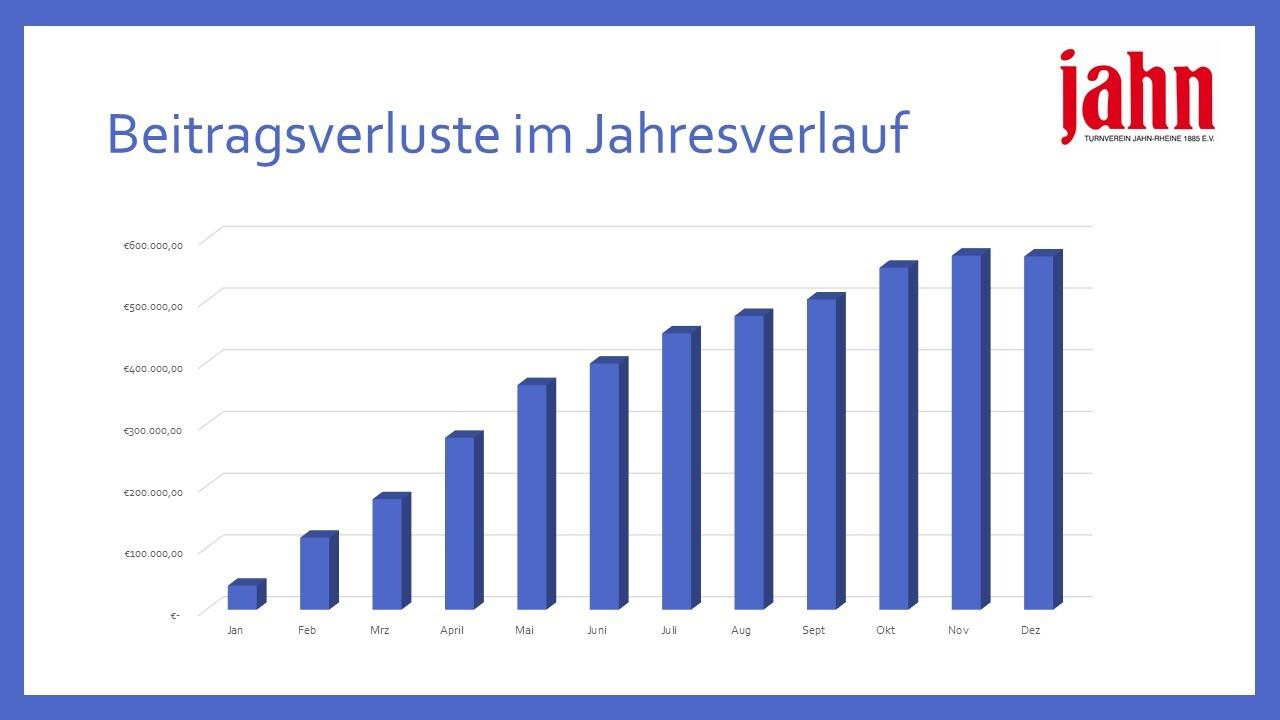 Weniger Mitglieder bedeuten weniger Beitragseinnahmen. Allein im Januar 2021 haben wir ca. 40.000€ weniger Beiträge eingezogen als im Januar 2020.