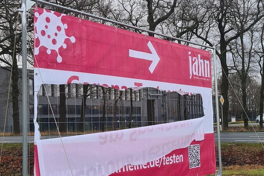Bereits zum dritten Mal wurde das Banner des Testzentrums am SportPARK des TV Jahn-Rheine zerstört. Dieses ist an der Straße Am Disselberg an einem Bauzaun befestigt. Wolfgang Brüning, Technischer Leiter erzählt: „Das Banner wurde zunächst zerschnitten, dann wurde der Bauzaun mehrmals umgeknickt“. Das Team des TV Jahn würde sich über Hinweise, oder Beobachtungen zu möglichen Tätern sehr freuen. Hinweise an: 05971/97 49 65
