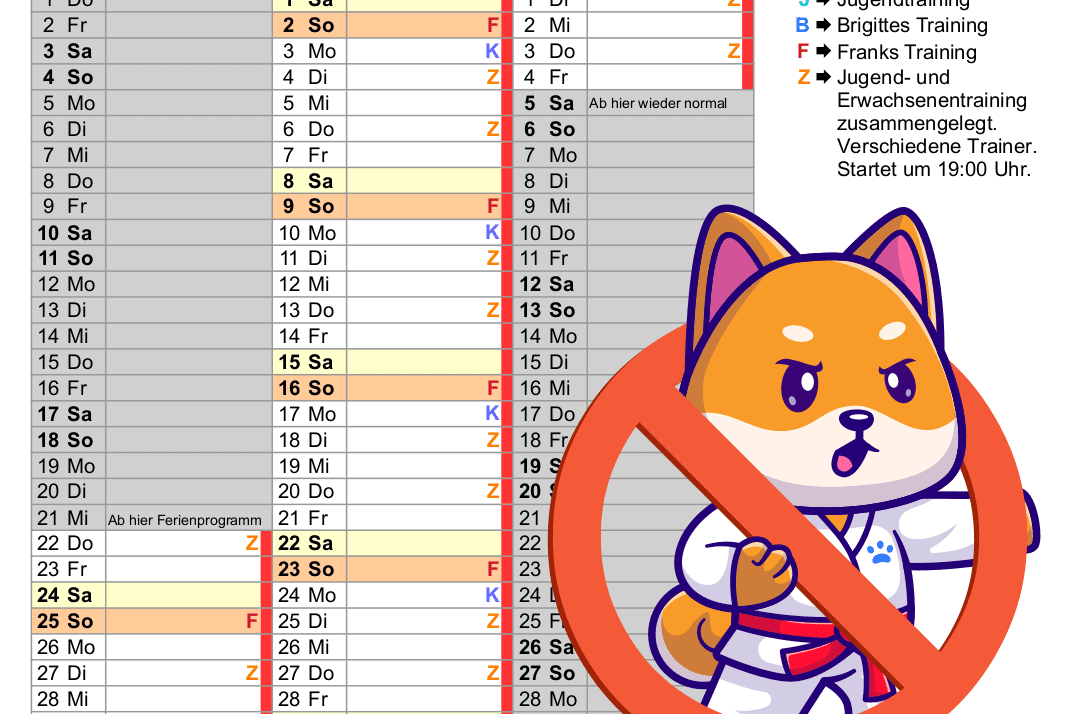 Desweiteren fallen einige Kindertraining-Einheiten aus.