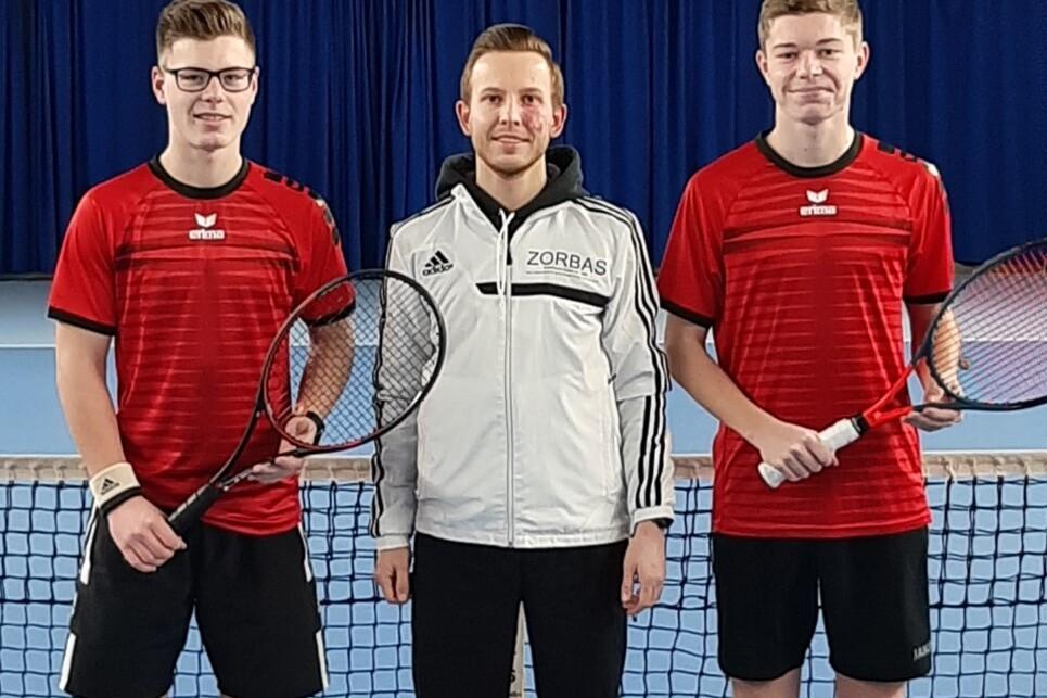 v.l.n.r.: Das erfolgreiche Team um Matthis Wehmschulte, Trainer Tobias Gruschka und Jan Lenzing.