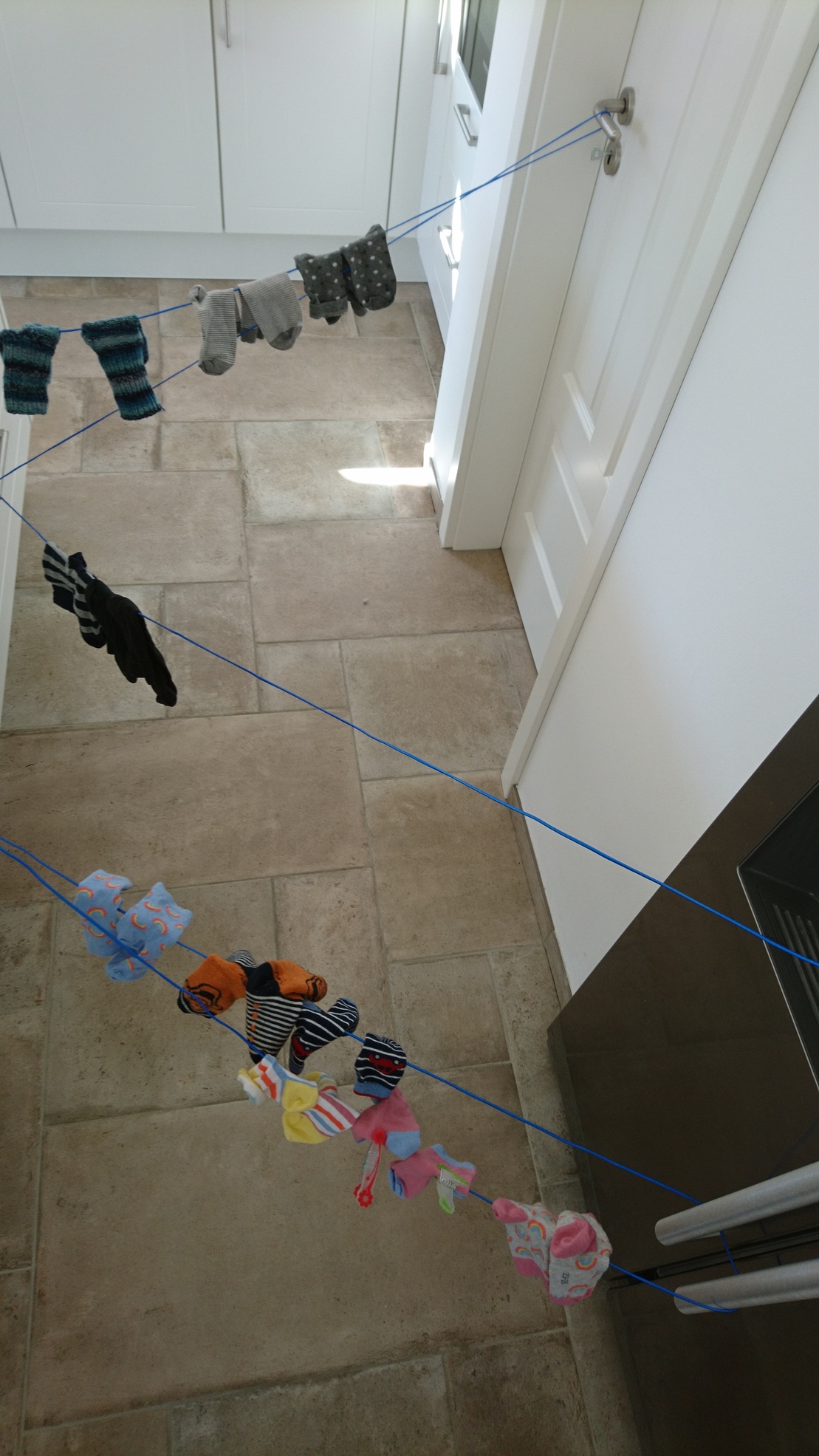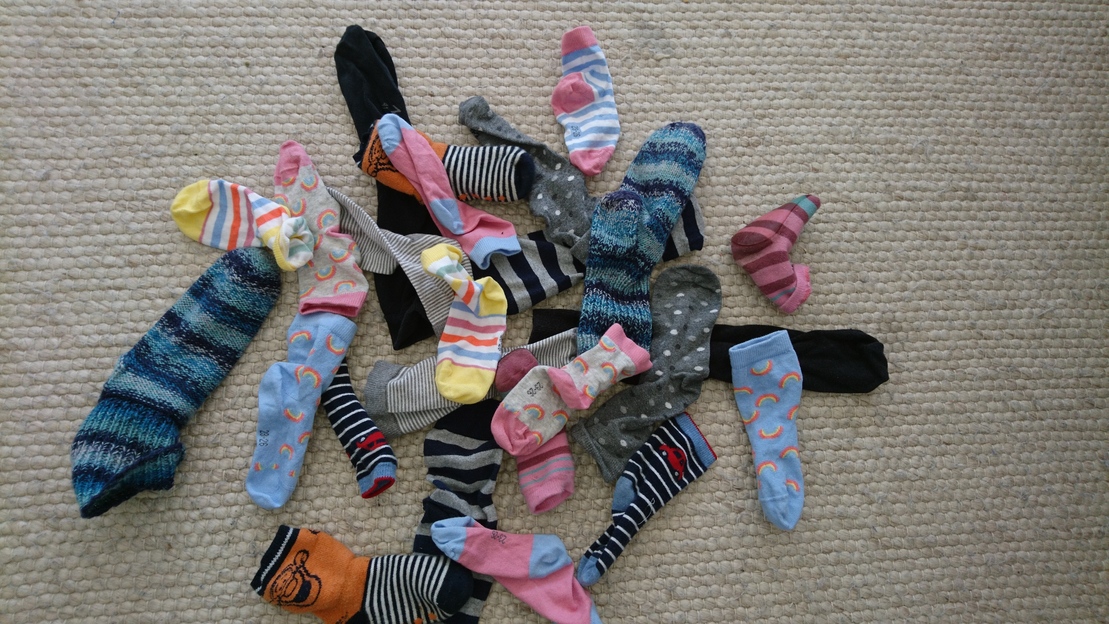 Alle Socken werden auf einen Haufen geschmissen und durchgemischt.