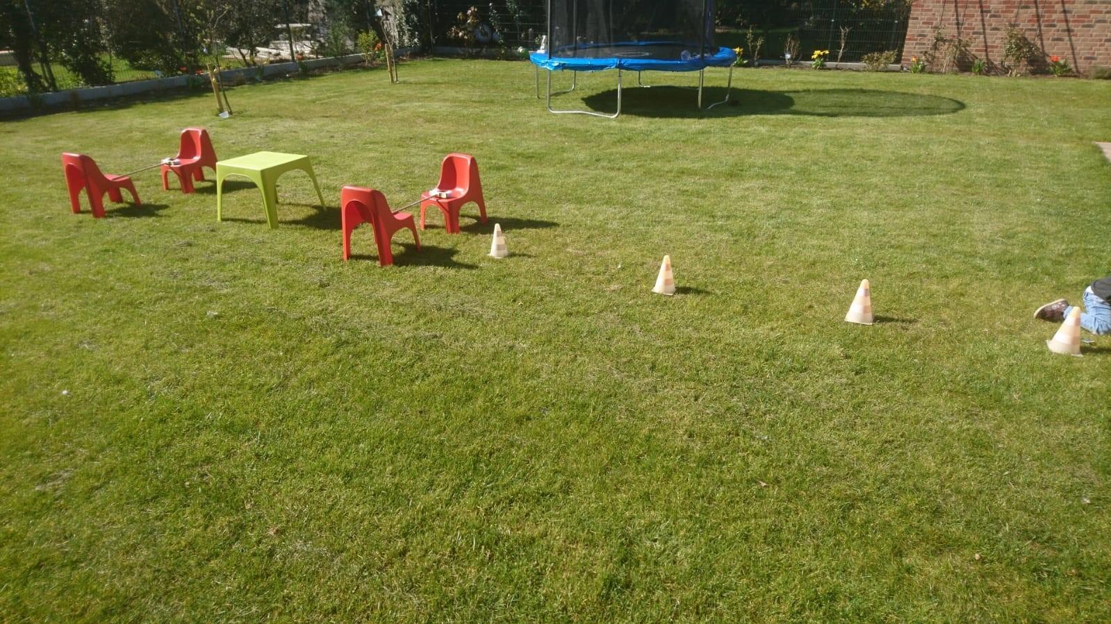 Mit einfachen Mitteln könnt ihr eur Haus, oder euren Garten in einen Bobbycar Parcours verwandeln.