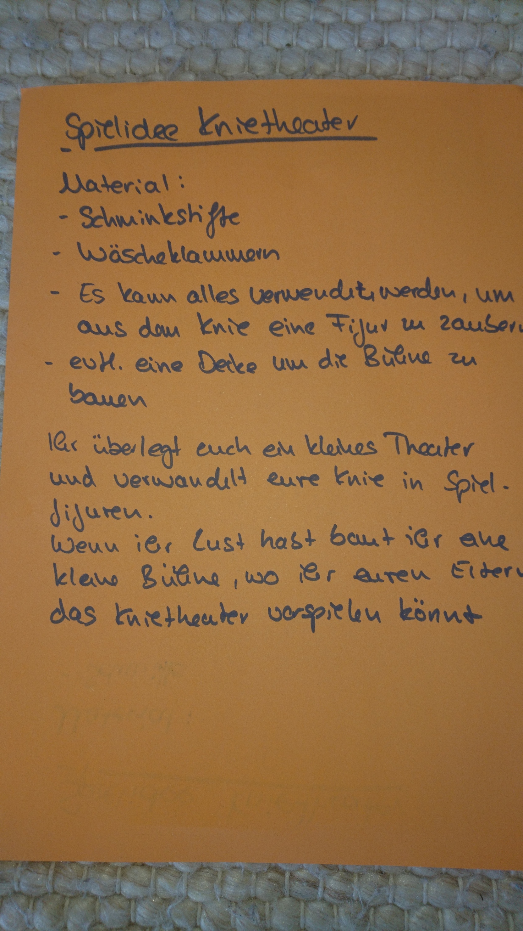 - Gegenstände, die du für den Aufbau benutzen kannst