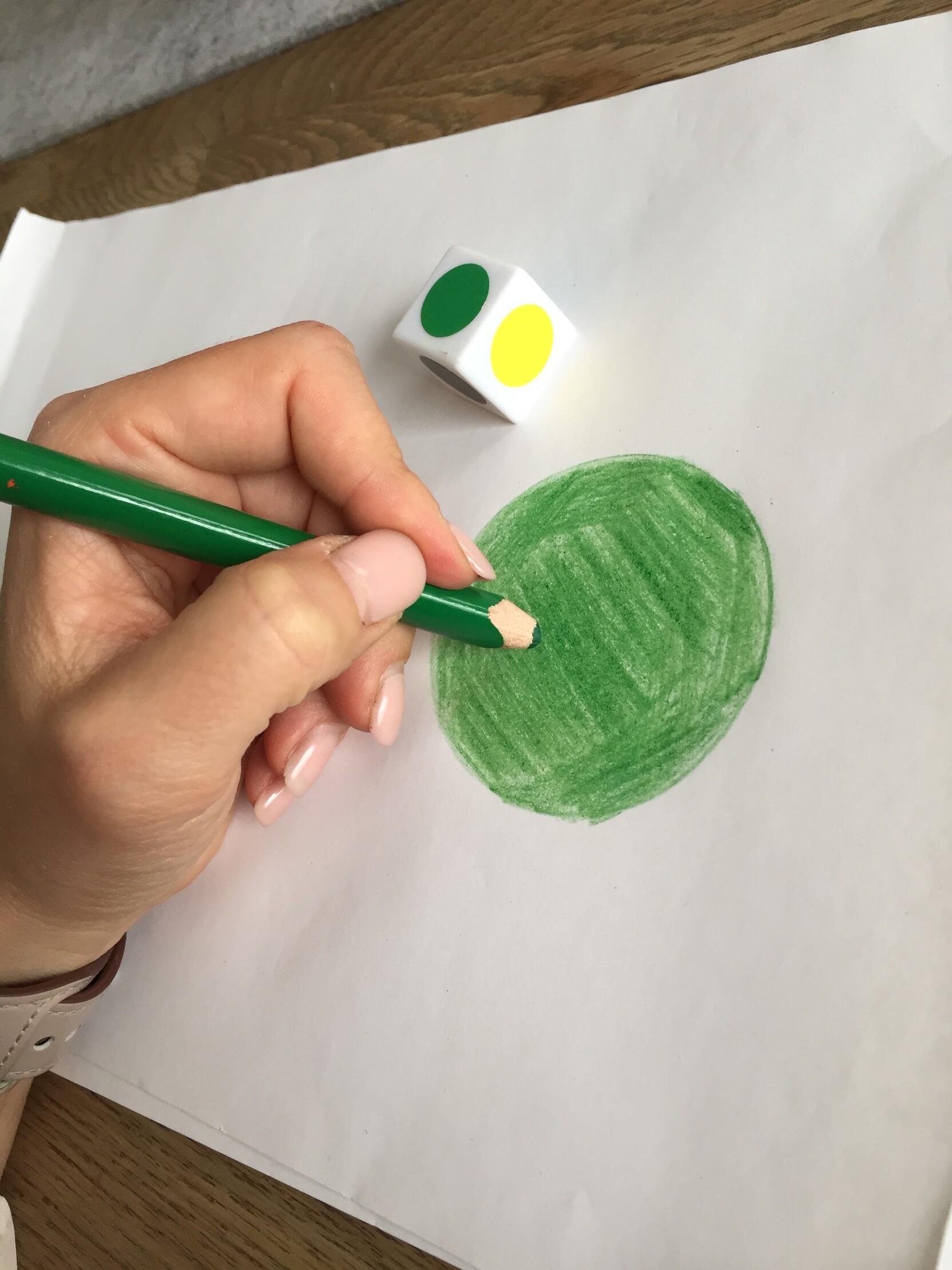 Male Punkte in den Farben des Würfels.