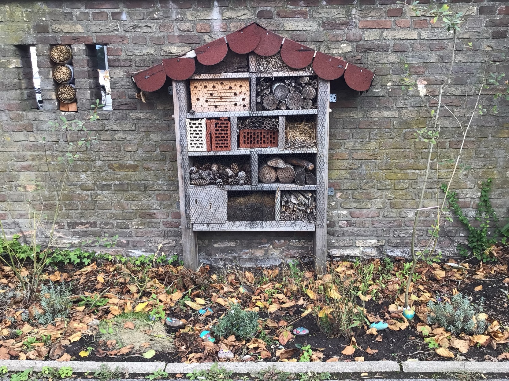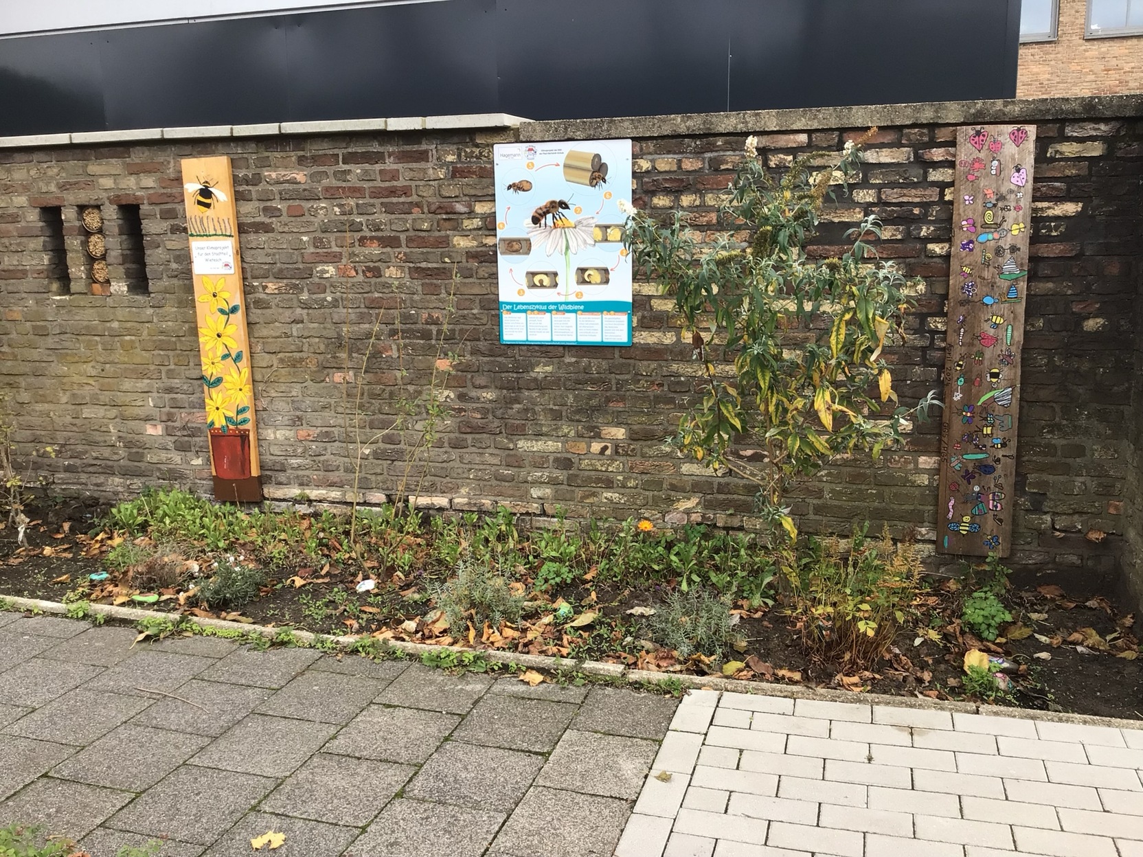 In liebevoller Arbeit mit Kindern aus der OGS, ist hier eine Bienen- und Insekten Landschaft entstanden.