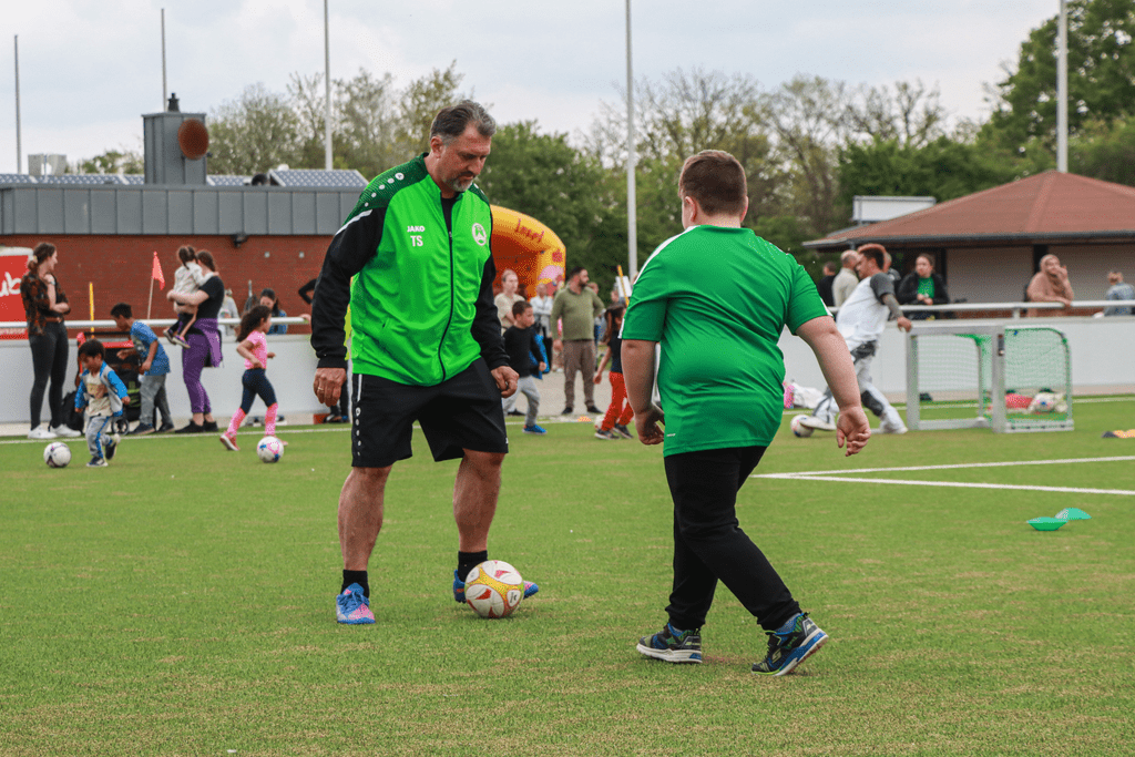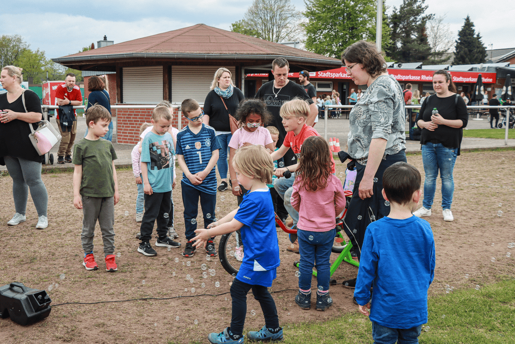 Am Freitag, den 05.05., gab es nun die Auftaktveranstaltung von „Sport Vernetzt“ für die Familien im Schotthock, zu der sich über 300 Kinder im Alter zwischen 3 – 11 Jahren mit ihren Eltern auf den Weg ins Auto-Deters-Stadion von Grün-Weiß Amisia Rheine machten. Der Fusionsverein aus dem Schotthock ist Netzwerkpartner vom TV Jahn Rheine und somit Mitglied und Unterstützer dieses Projektes.