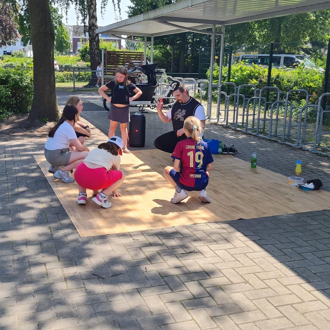 Ein besonderes Highlight des Tages war die Breakdance-Station von Daniele Spaziani vom TV Jahn. Der Breakdancer zeigte den Kindern einige coole Moves und animierte sie, selbst aktiv zu werden. Die Kinder waren begeistert und ließen sich von der Energie mitreißen.