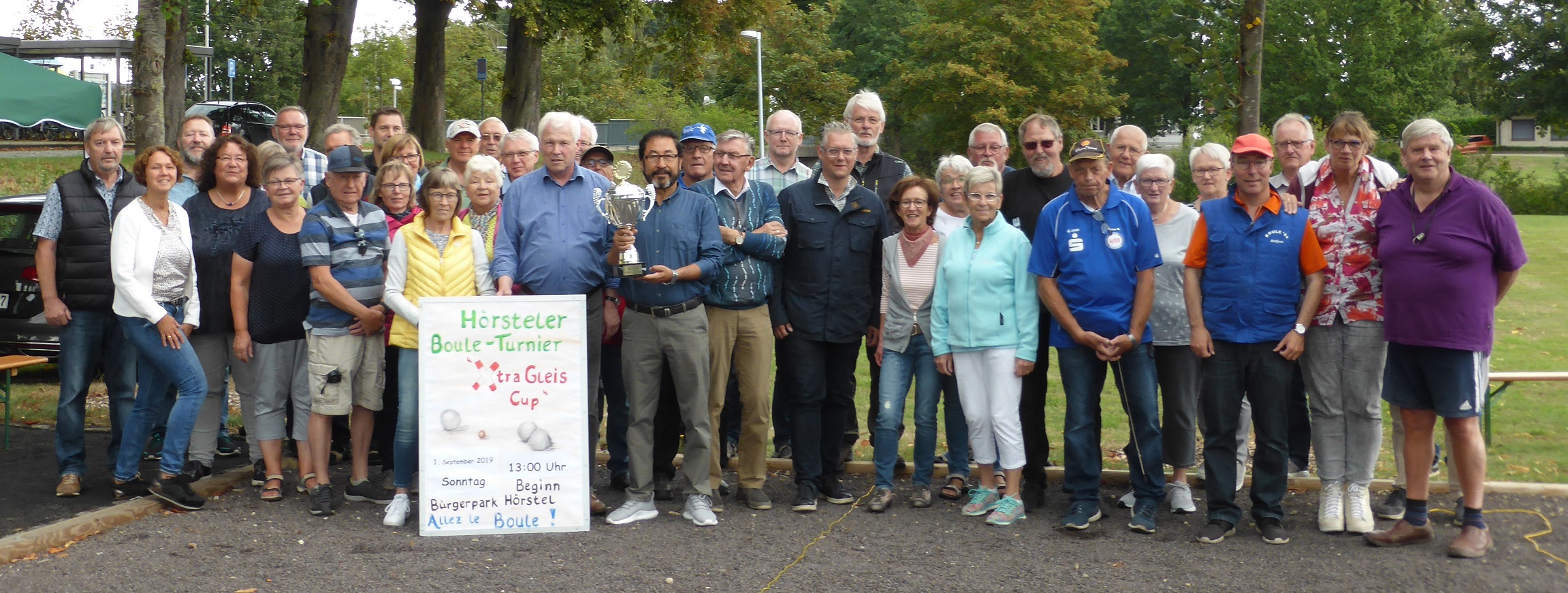 Am Sonntag, den 01.09.2019 nahmen mehr als 10 Boule-Spieler/innen des TV Jahn-Rheine am“ Xtra-Gleis-Cup“ im Bürgerpark Hörstel teil. Aufgrund der Städtepartnerschaft der Stadt Hörstel mit Dalfsen/NL waren viele niederländische Boule-Freunde vor Ort.