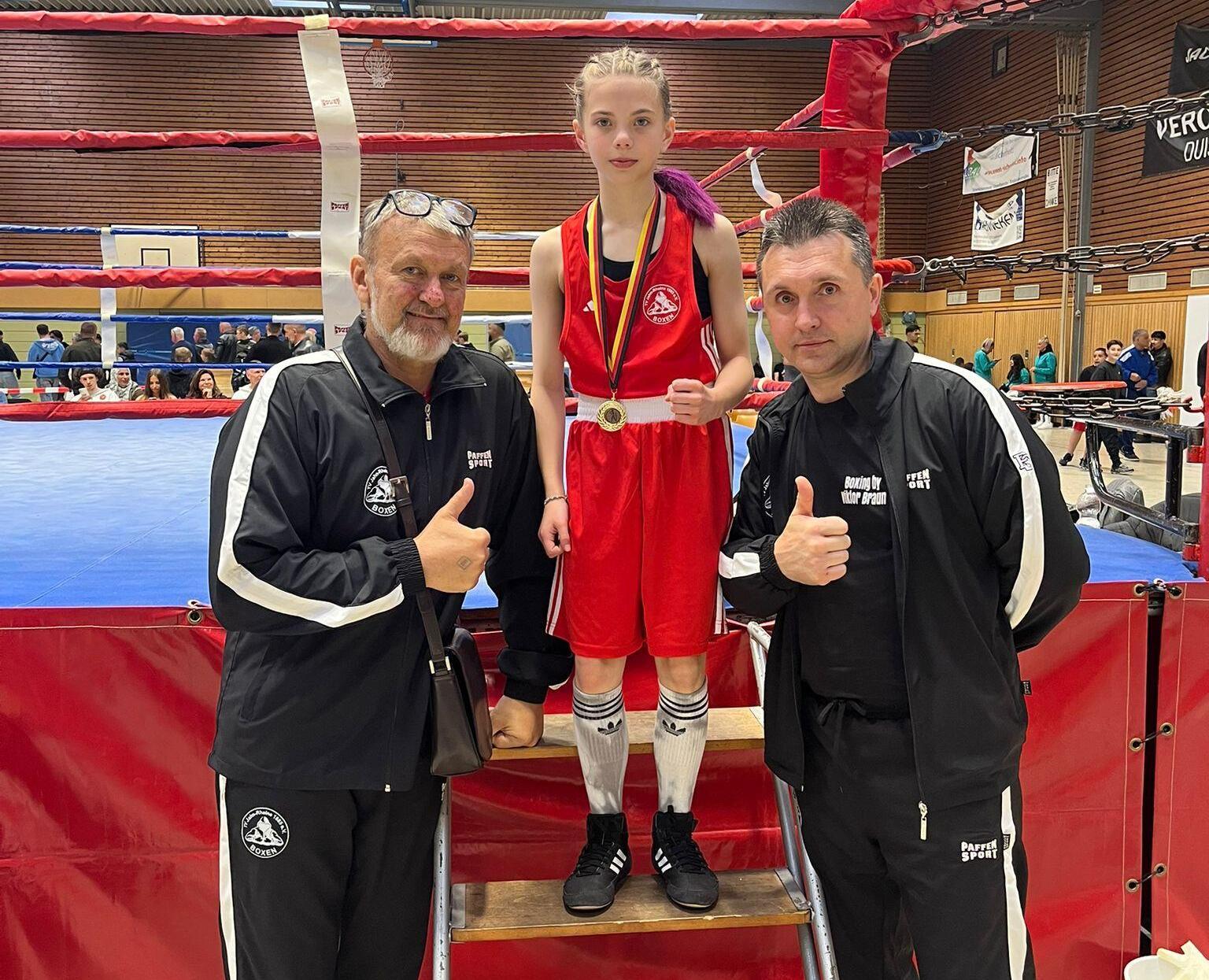 Viktor Braun, Dmytro Zashchuk (Meister U19), Zoey Karallus (Vizemeisterin U13), Roman Gebert