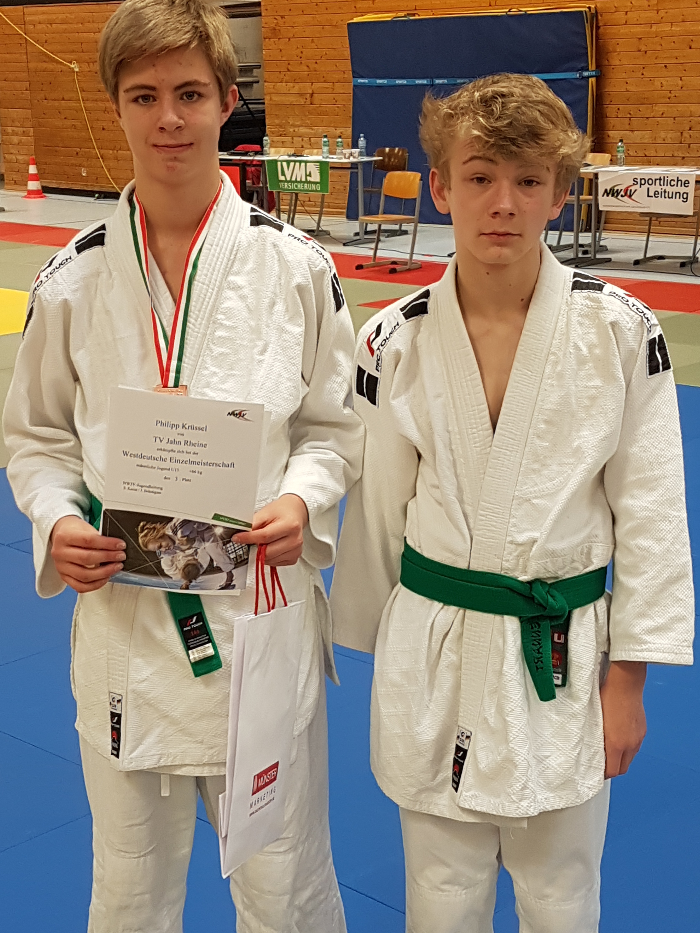Die Judoka Philipp Krüssel und Lennart Haußner des TV Jahn-Rheine hatten sich auf der Bezirksmeisterschaft vor zwei Wochen qualifiziert und traten am vergangenen Samstag die Reise zur Westdeutschen Einzelmeisterschaft in Münster an. „Die Halle war voll, die Wettkämpfe spannend. Auch wenn die beiden einen langen Atem brauchten, konnten Sie ihre Leistung abrufen. Wir sind mit den Platzierungen sehr zufrieden“, berichtet Trainer Peter Friesen.