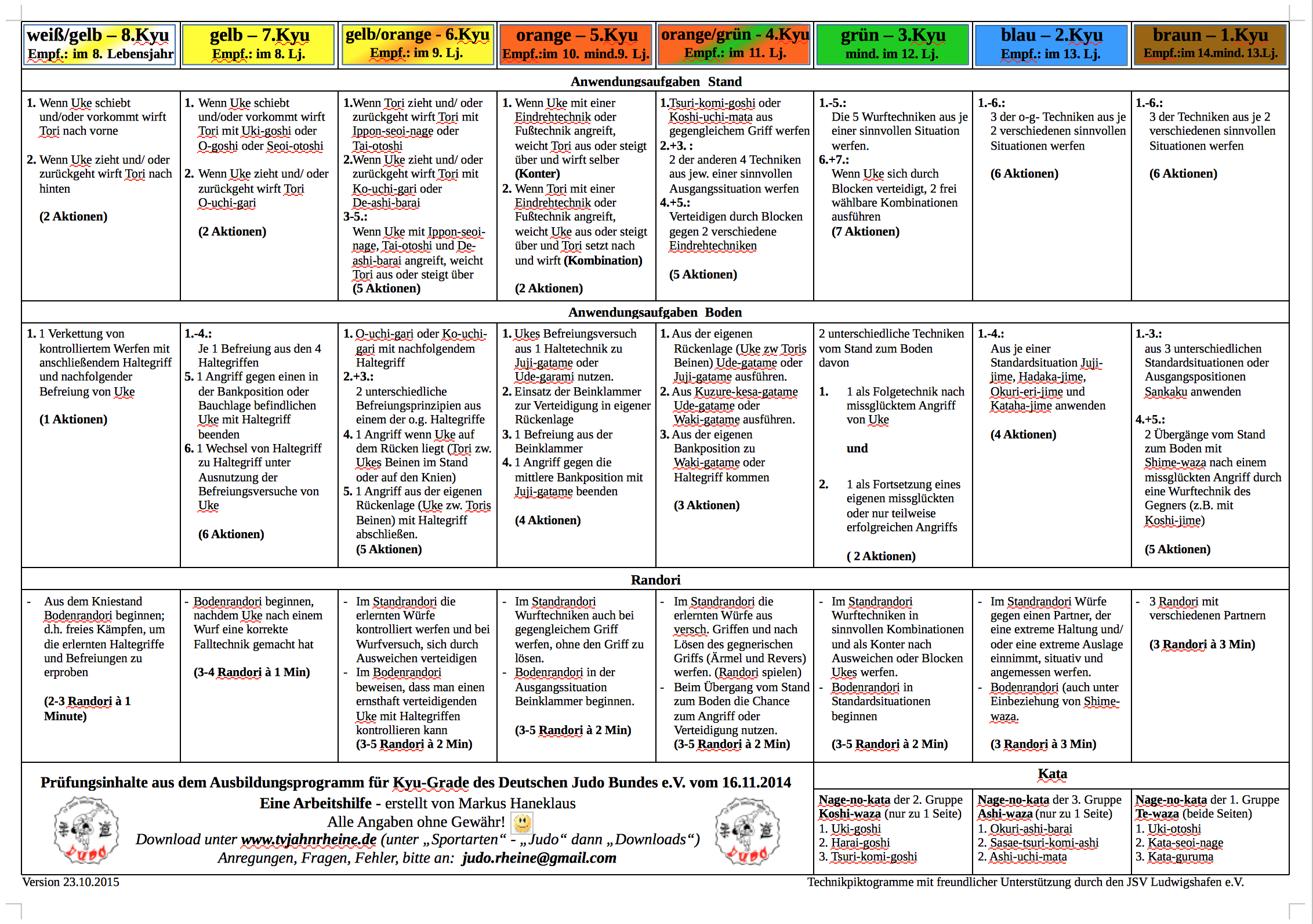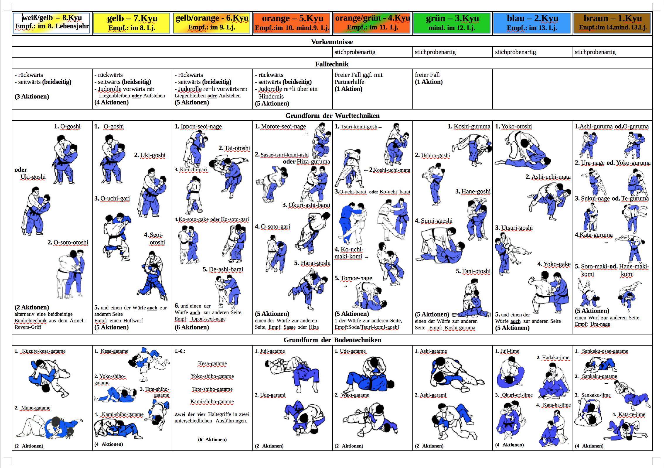 Hier das Kyu-Prüfungsprogramm des DJB (gültig ab November 2014) übersichtlich auf einem Blatt
