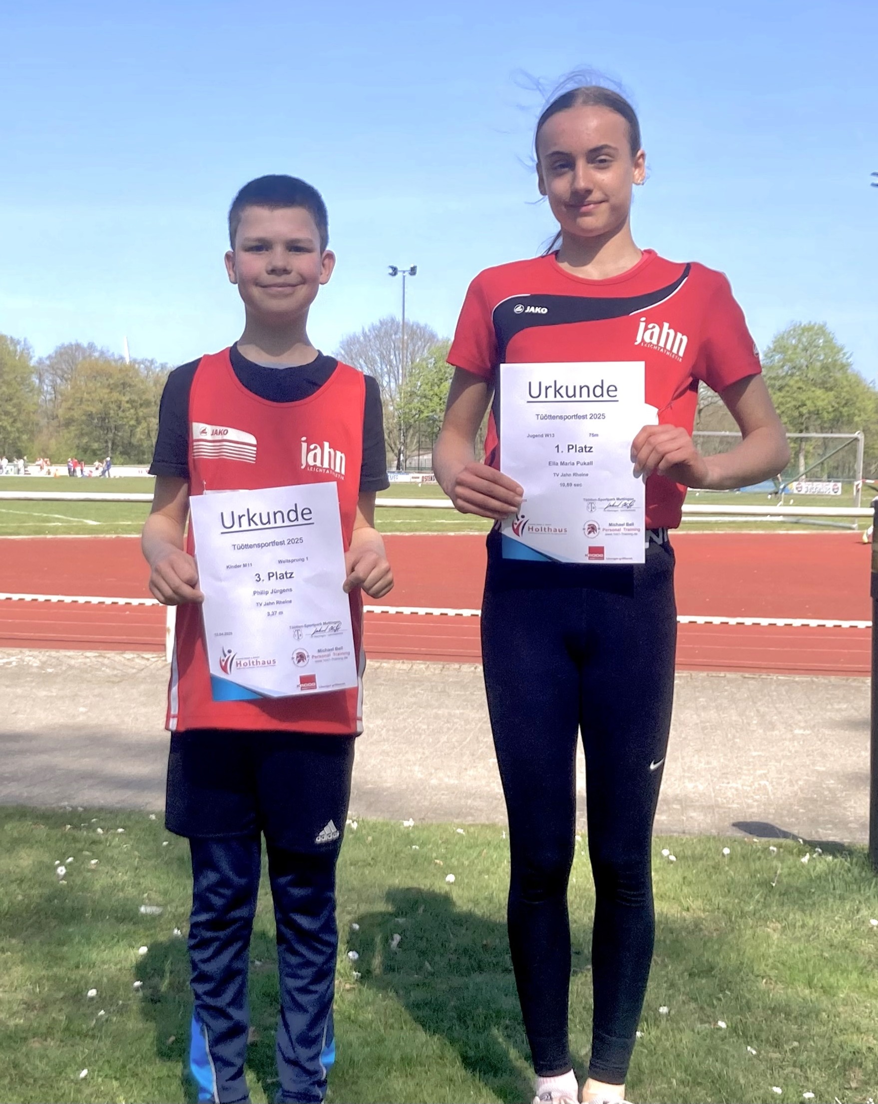 Am vergangenen Wochenende begann für die Leichtathleten des TV Jahn Rheine die Freiluftsaison beim Tüöttensportfest in Mettingen. Für den Verein waren Philip Jürgens in der Altersklasse M11 und Ella Pukall in der Altersklasse W13 am Start.