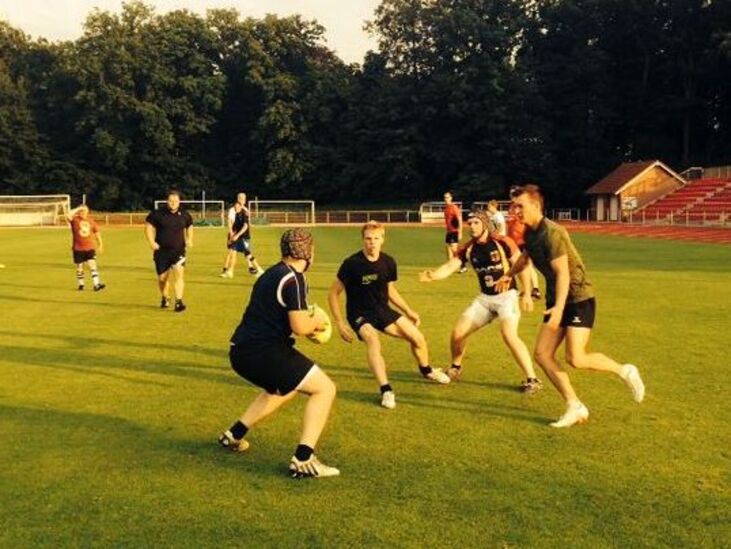 Beim Rugby spielen zwei Mannschaften gegeneinander und versuchen Punkte zu erzielen, in dem sie den ovalen Ball an der gegnerischen Mannschaft vorbeitragen, oder in ein Tor schießen. Trainiert wird montags und donnerstags, jeweils ab 19.00 Uhr im Jahnstadion.