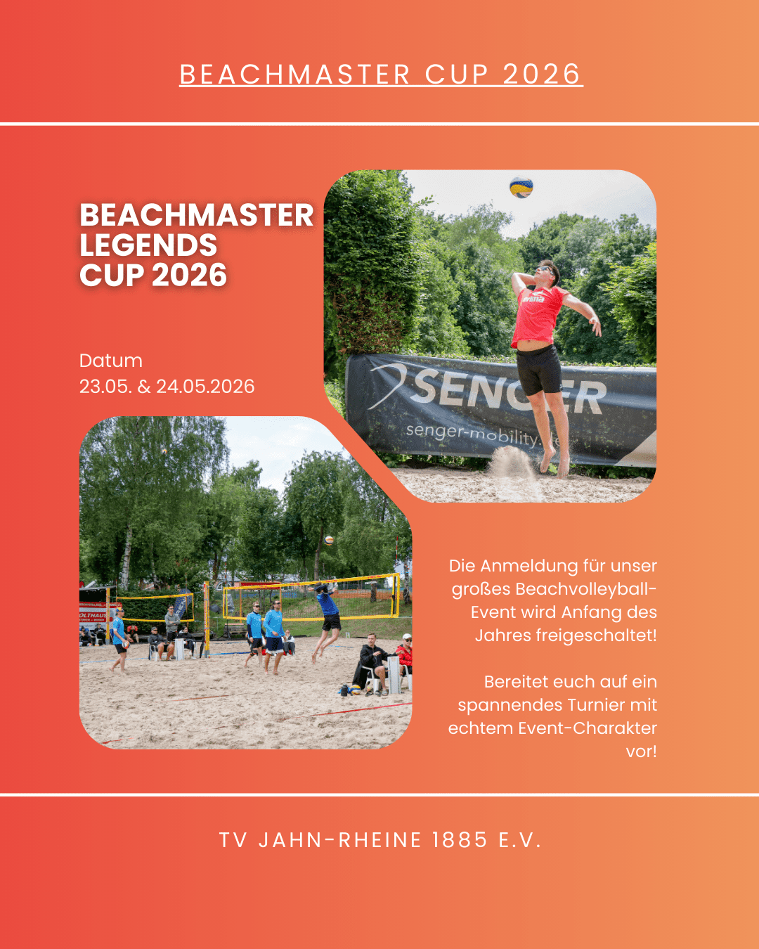 Der BEACHMASTER LEGENDS CUP 2026 findet am Samstag, den 23. Mai, und Sonntag, den 24. Mai 2026, statt!